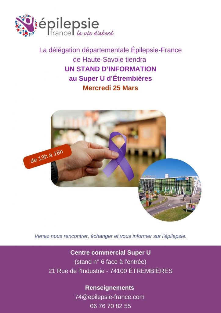 La délégation départementale Épilepsie-France de Haute-Savoie tiendra UN STAND D’INFORMATION au Super U d’Étrembières, Samedi 14 Mars de 13h à 18h. Venez nous rencontrer, échanger et vous informer sur l’épilepsie.1 Centre commercial Super U (stand n° 6 face à l’entrée) 21 Rue de l’Industrie – 74100 ÉTREMBIÈRES Renseignements 74@epilepsie-france.com 06 76 70 82 55 Épilepsie France – La […]