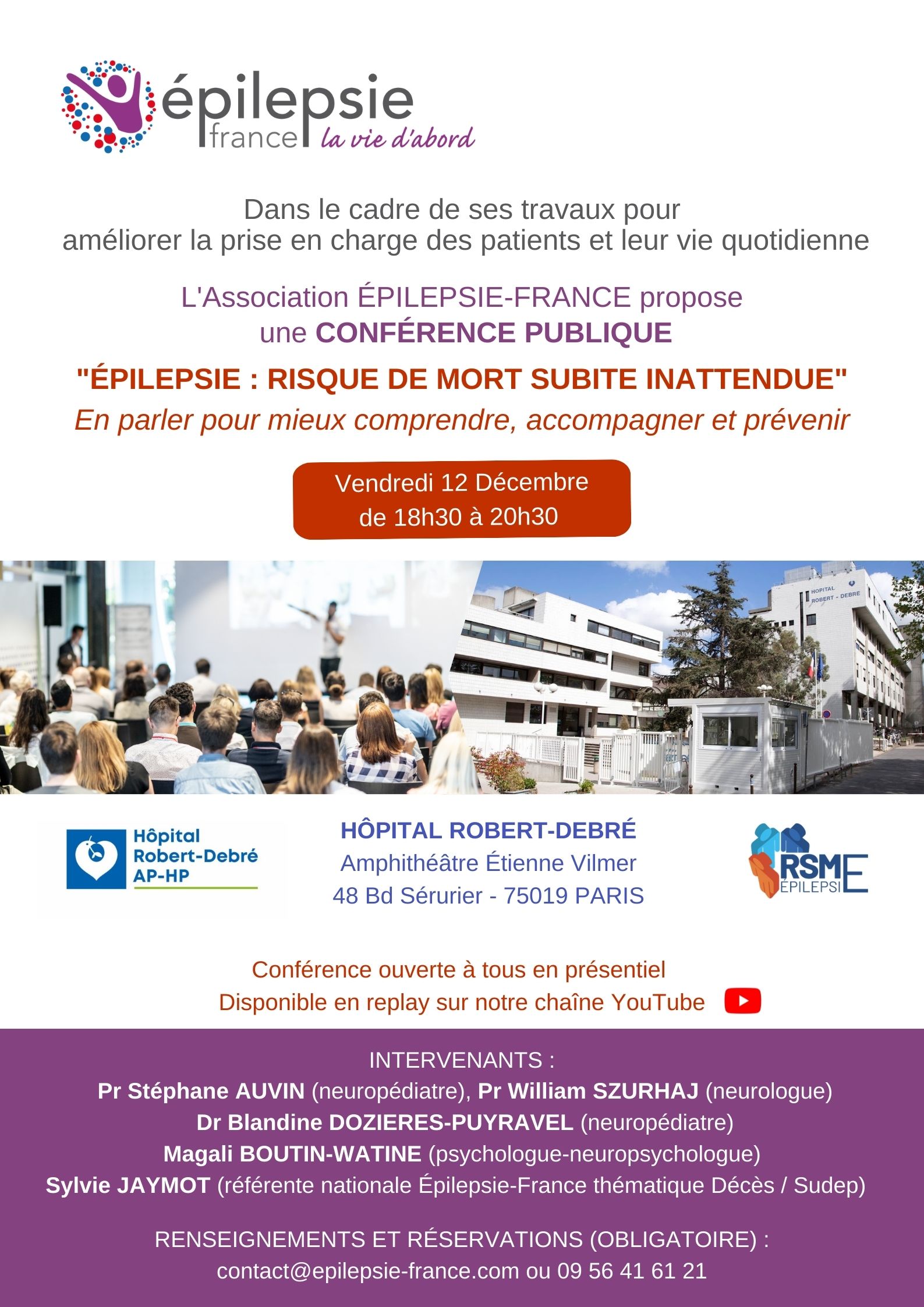 Dans le cadre de ses travaux afin d’améliorer la prise en charge des patients et leur vie quotidienne, Épilepsie-France a proposé le 12 décembre 2025, une conférence grand-public, ouverte à tous  sur le thème :