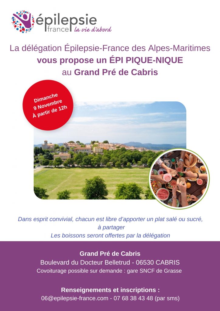 La délégation Épilepsie-France des Alpes-Maritimes vous propose un ÉPI PIQUE-NIQUE au Grand Pré de Cabris, Dimanche 9 Novembre à partir de 12h.