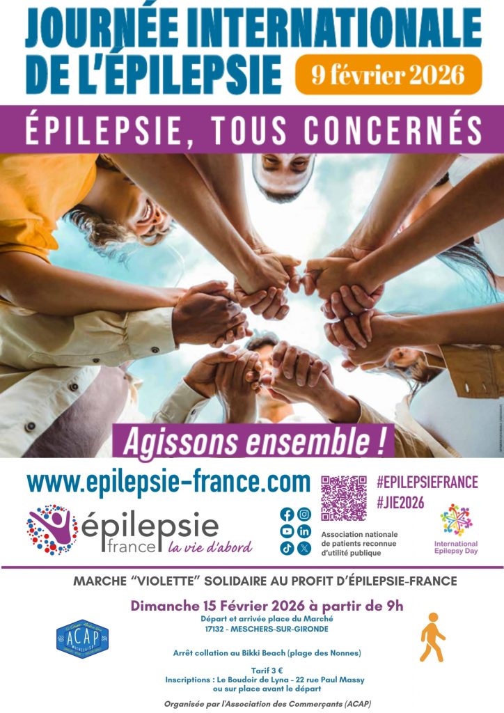 À l’occasion de la Journée Internationale de l’Épilepsie, l’Association des Commerçants, Artisans et Professions Libérales (ACAP) de Meschers-sur-Gironde propose une marche « Violette » solidaire au profit d’Épilepsie-France, Dimanche 15 Février à partir de 9h.