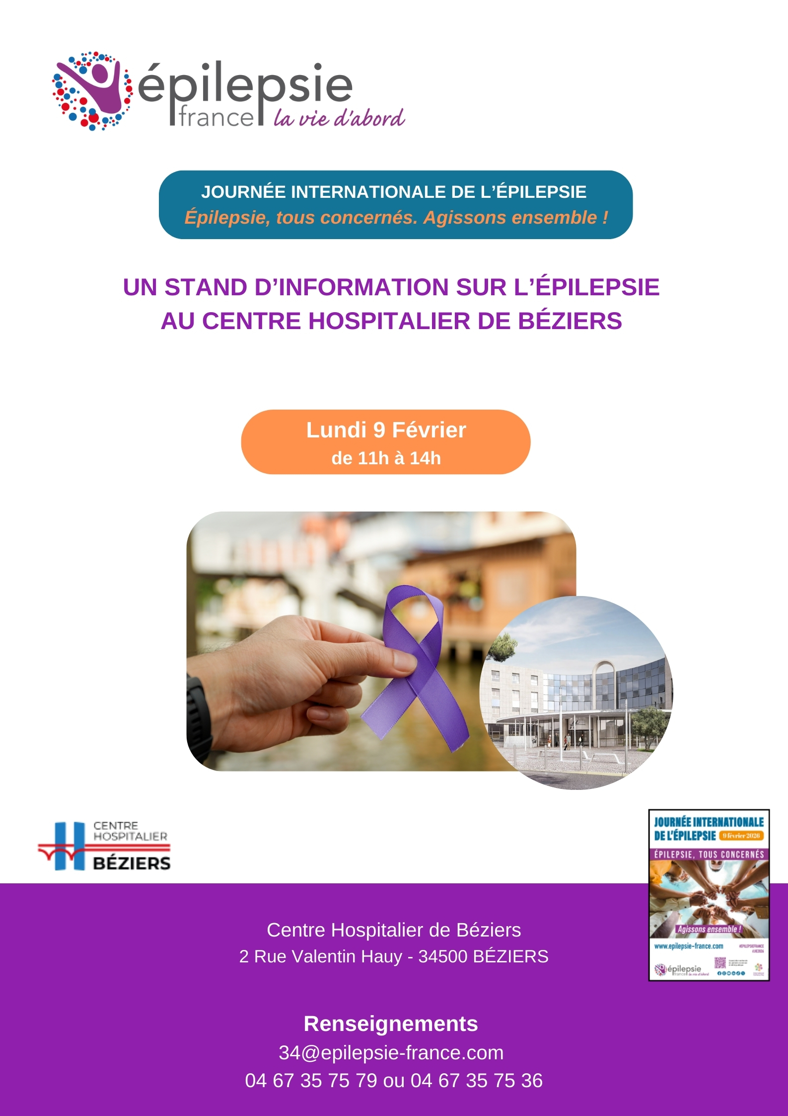 BÉZIERS (34) : 9 FÉVRIER 2026 – STAND D’INFORMATION SUR L’ÉPILEPSIE AU CH DE BÉZIERS
