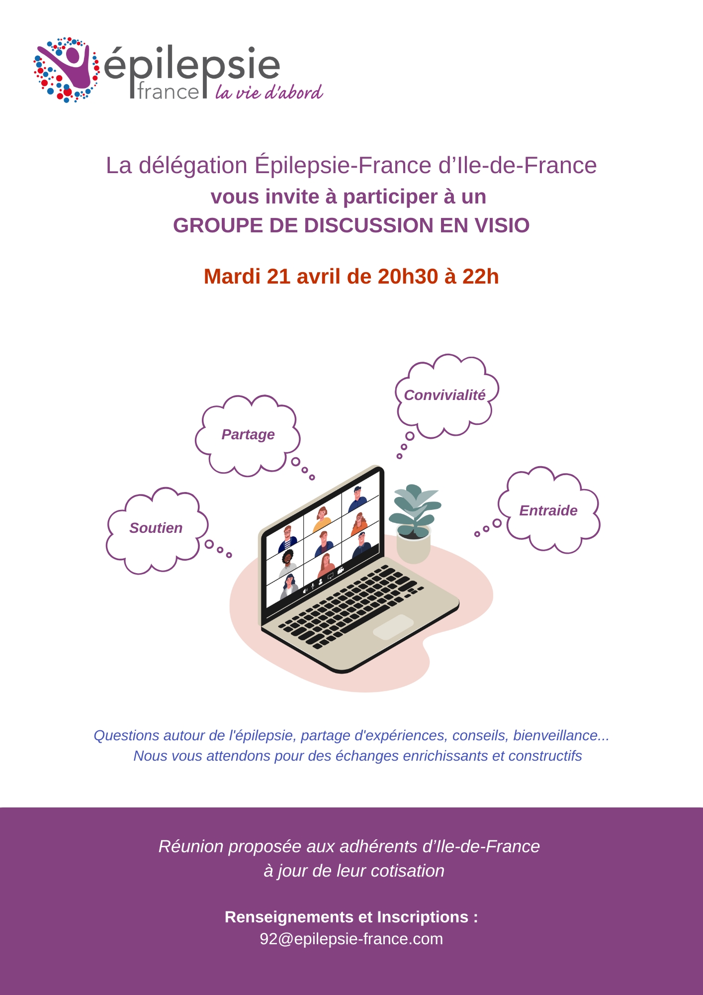 ÎLE-DE-FRANCE (75) : 21 AVRIL 2026 – GROUPE DE DISCUSSION EN VISIO