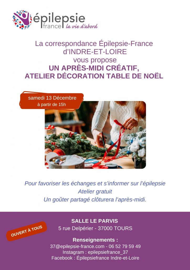 La correspondance Épilepsie-France d’INDRE-ET-LOIRE vous propose un après-midi créatif, pour favoriser les échanges et s’informer sur l’épilepsie autour d’un atelier décoration de table de Noël, samedi 13 Décembre à partir de 15h.