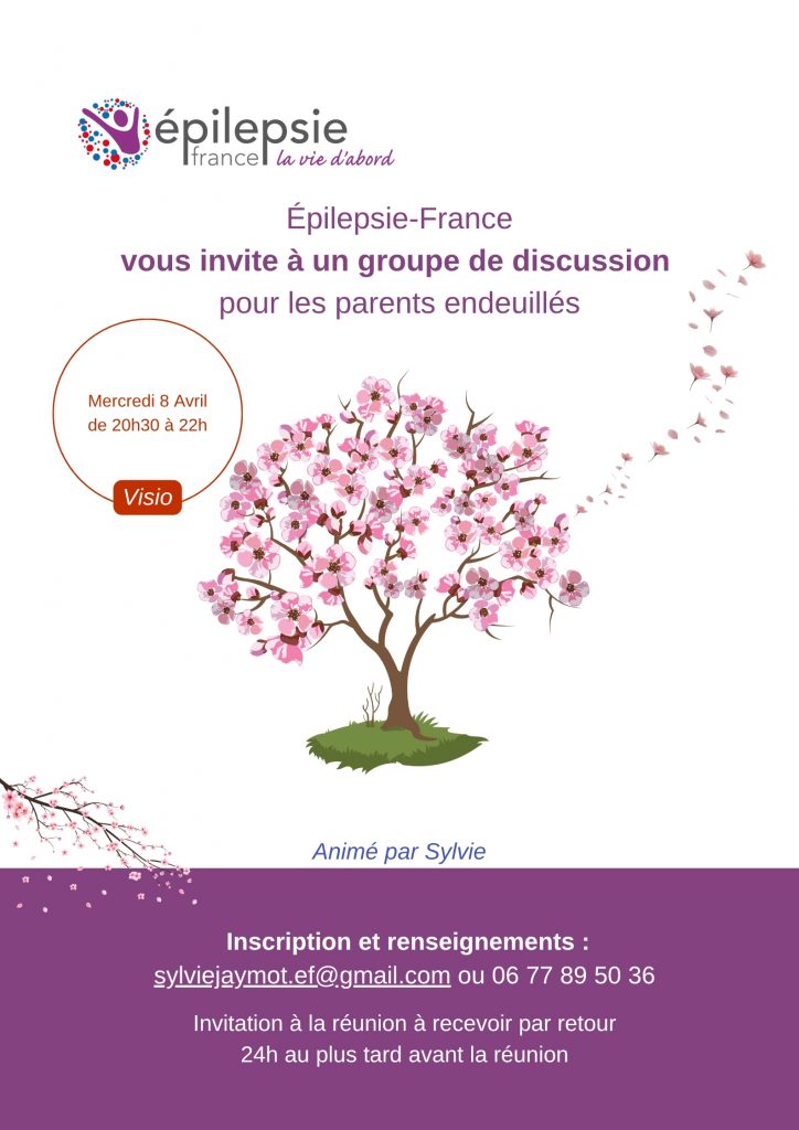 Épilepsie-France vous invite à un groupe de discussion en visio, pour les parents endeuillés, Mercredi 8 Avril de 20h30 à 22h.